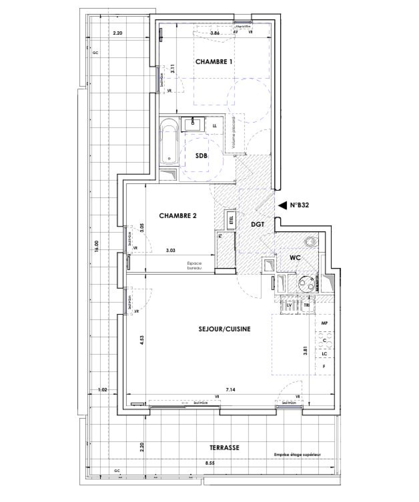 Appartement 3 pièce(s) 2 chambre(s) 68.6 m²