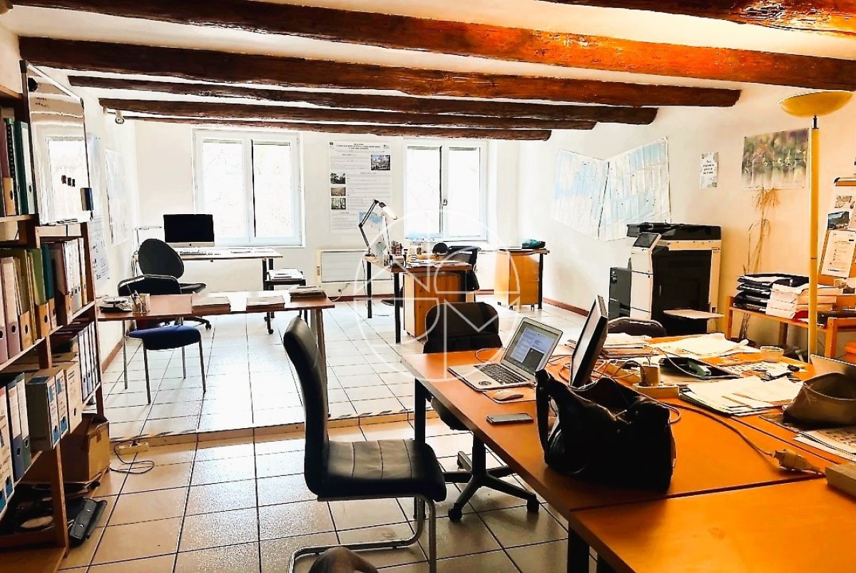 Ce local professionnel à destination de bureaux, donnant sur rue, saura vous séduire par son emplacement stratégique ainsi que par ses beaux volumes et leurs cachets, notamment poutres apparentes et belles prestations.