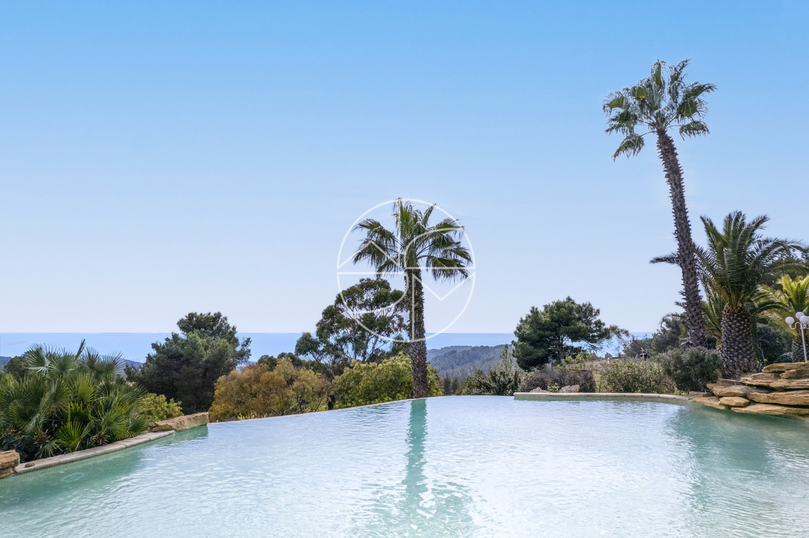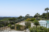 A l'extérieur, une cuisine d'été avec terrasse surplombe une somptueuse piscine, chauffée, qui domine la baie, ainsi que des jardins mediterrannéens avec divers espaces (boulodrome, potager, oliveraie, espace de jeux) et deux grands garages ainsi que des dépendances accompagnent ce bien.