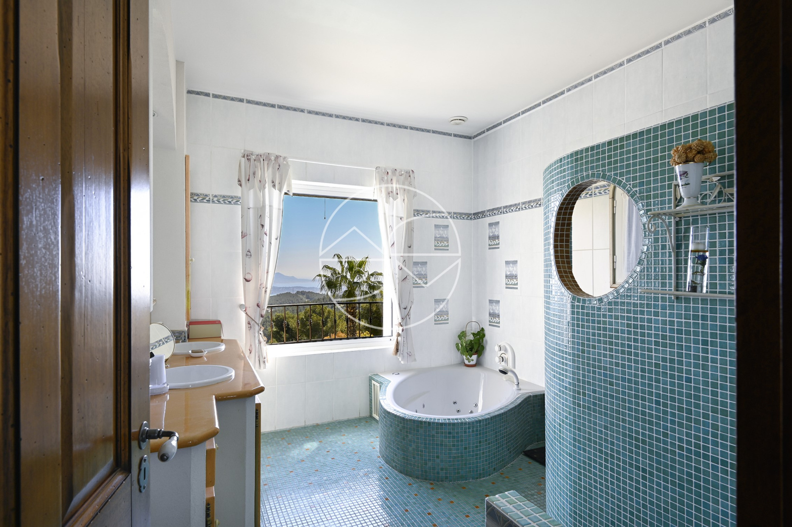 Cette belle demeure offre un cadre idyllique. La villa se compose avec une première aile Ouest possédant une entrée donnant sur un séjour cathédrale, avec plus de 7 mètres de hauteur sous plafond, une cheminée, une salle à manger prolongée par une immense terrasse avec vue mer panoramique, une cuisine américaine toute équipée, un cellier, une chambre parentale et une salle de bain avec vue mer, un dressing, une buanderie et des wc séparés. Un bureau en mezzanine vient parfaire cet espace de vie.