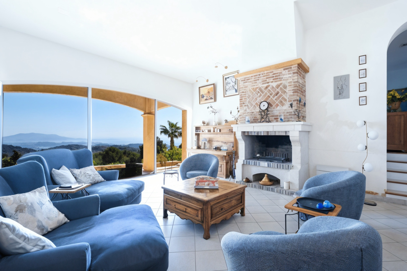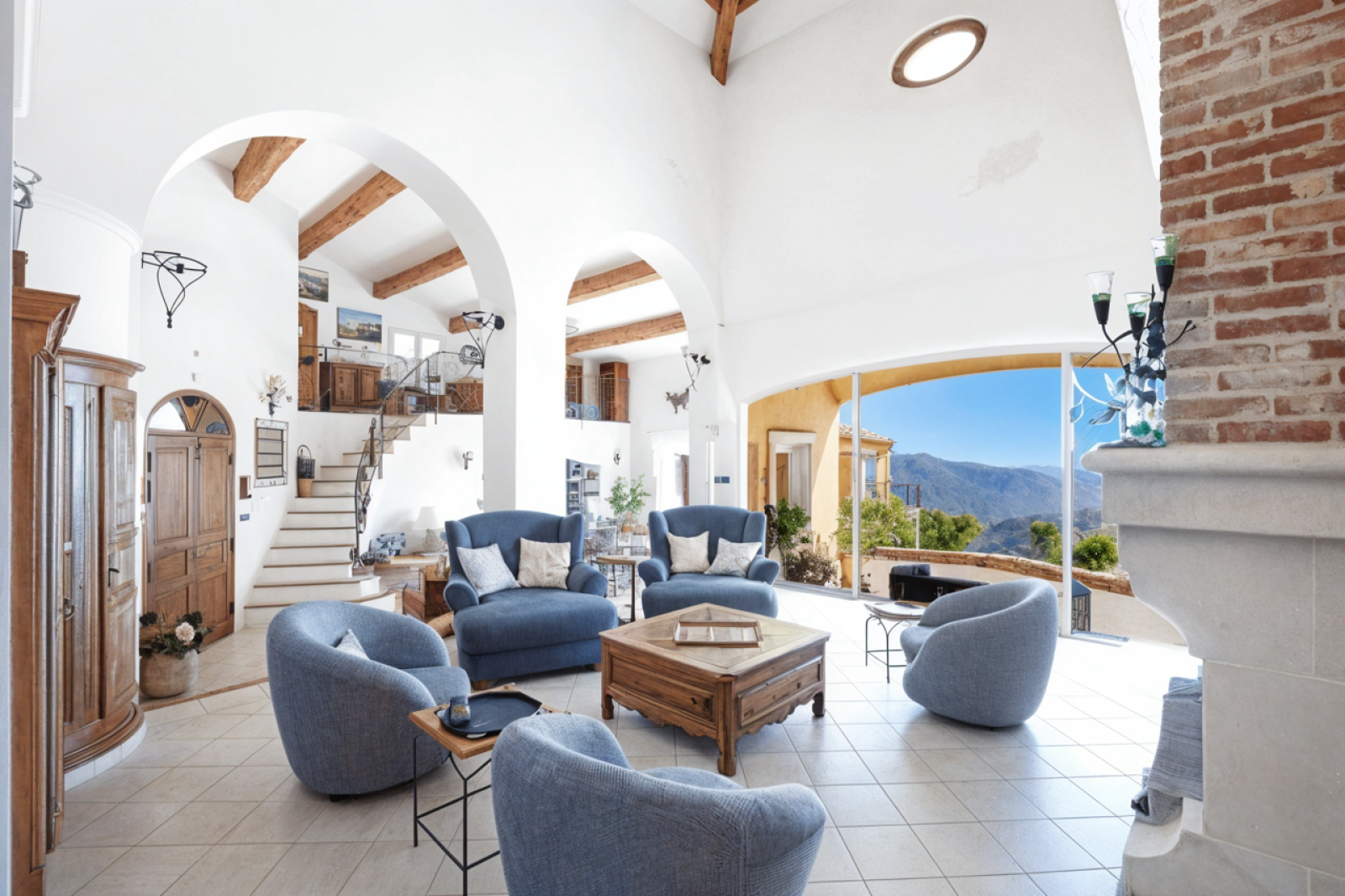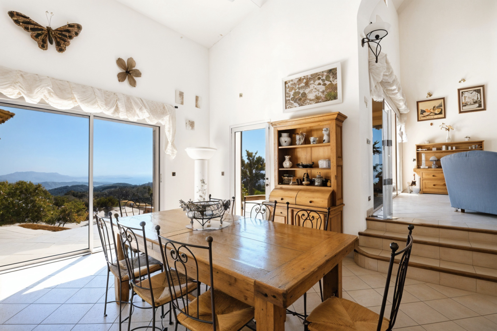 Cette belle demeure offre un cadre idyllique. La villa se compose avec une première aile Ouest possédant une entrée donnant sur un séjour cathédrale, avec plus de 7 mètres de hauteur sous plafond, une cheminée, une salle à manger prolongée par une immense terrasse avec vue mer panoramique, une cuisine américaine toute équipée, un cellier, une chambre parentale et une salle de bain avec vue mer, un dressing, une buanderie et des wc séparés. Un bureau en mezzanine vient parfaire cet espace de vie.