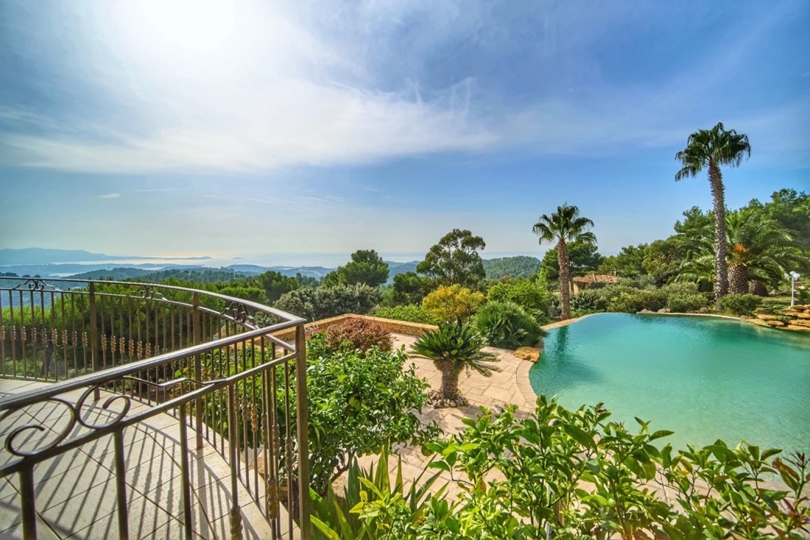 A l'extérieur, une cuisine d'été, avec terrasse surplombe une somptueuse piscine, chauffée, domine la baie, ainsi que des jardins mediterrannéens avec divers espaces (boulodrome, potager, oliveraie, espace de jeux) , deux grands garages ainsi que plusieurs dépendances accompagnent ce bien.